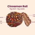 Een ware smaakbeleving! Een lichte basis met verkruimelde biscuit, afgetopt met crunchy cinnamon pasta en omhuld met melkchocolade. Dit is de ultieme cinnamon roll in een bar!