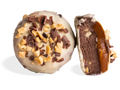 Donkere bodem, crispy honeycomb en zachte karamel, gehuld in witte chocolade. Wit van buiten, puur genot van binnen.