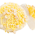 Nieuw: Kleine Piggy Bites in de heerlijkste smaak. Vanillebasis met romige creamcheese en frisse lemon meringue, omhuld in witte chocolade. Een zonnestraaltje in snackvorm.