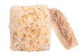 Ingredienten: Witte chocola (suiker, cacaoboter, volle melkpoeder, emulgator: sojalecithine, aroma: natuurlijke vanille), wei-eiwit concentraat (melk, emulgator: sojalecithine) tapioca vezel, witte hazelnootpasta (plantaardige vetten (zonnebloem, palm), hazelnoot 10%, magere melkpoeder, weipoeder (melk), lactose, emulgator: sojalecithine, aroma's), bevochtigingsmiddel (glycerol), zonnebloemolie, hazelnootstukjes, nougatine (suiker, pinda, hazelnoot, gekaramelliseerde suiker, water), kokosrasp