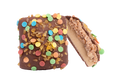 Ingredienten: Wei-eiwit concentraat, tapioca vezel, suiker, plantaardige olie (palm, zonnebloem, palmpit, kokosnoot), volle melkpoeder, bevochtigingsmiddel: glycerol, cacaoboter, witte chocolade (volle melkpoeder, suiker, cacaoboter, emulgator: sojalecithine, natuurlijk vanille aroma), fijn verkruimeld koekje (tarwebloem, suiker, boterconcentraat, magere melkpoeder, kleurstof: karamel, zout, gerstemoutextract, emulgator: zonnebloemlecithine), cacaomassa, weipoeder, amandelen, glucosestroop, watervrij melkvet, fleur de sel, palmvet (RSPO SG), emulgator: sojalecithine, natuurlijk vanille-extract, aroma's, aardappelzetmeel, rijstmeel, maïszetmeel, kleurstoffen: curcumine, riboflavine-5-fosfaat, patentblauw v, anthocyanen, emulgator: mono- en diglyceriden van vetzuren, boter.